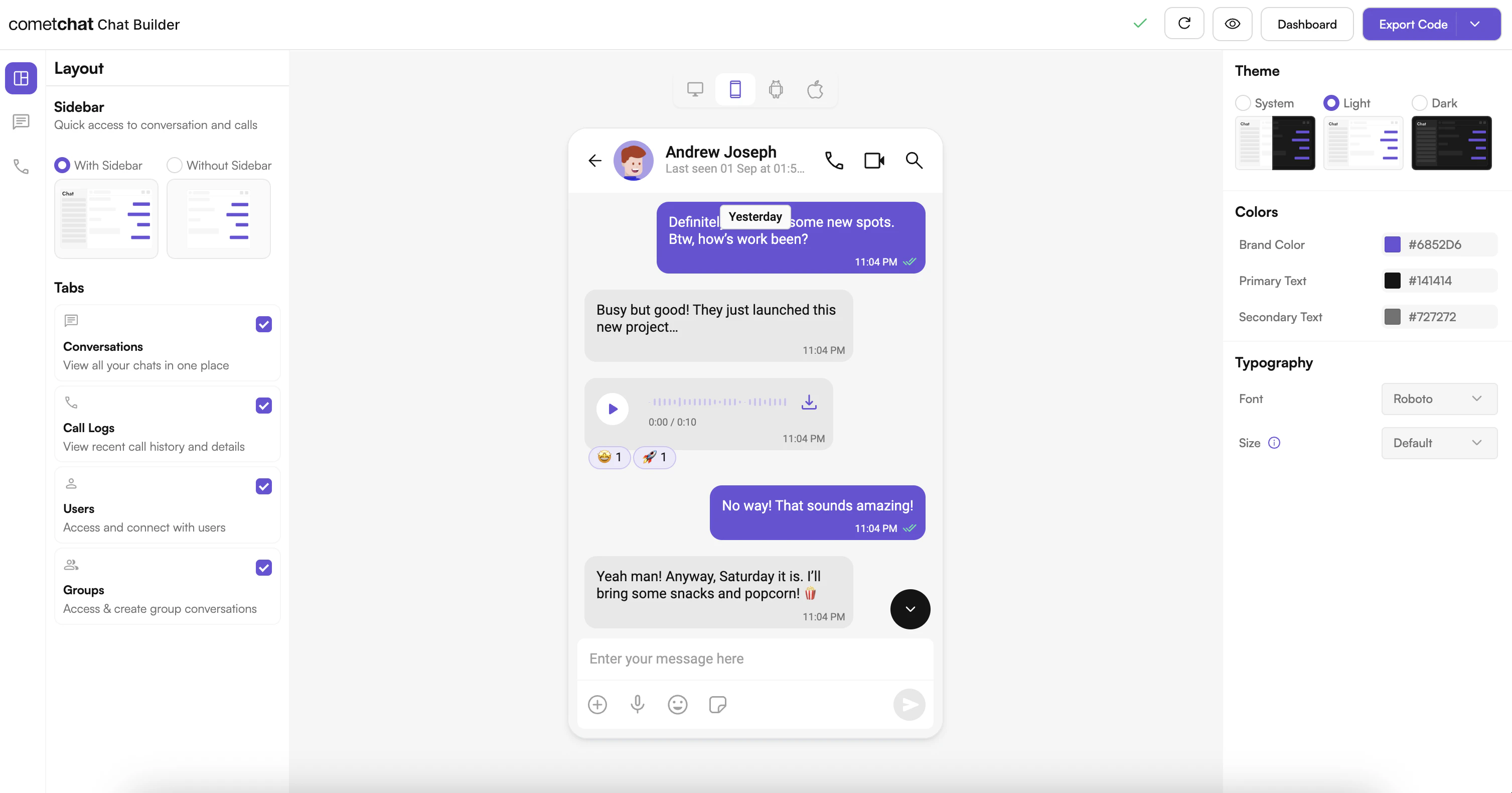 - Design Your Chat Experience - Use the UI Kit Builder to customize layouts, features, and styling.