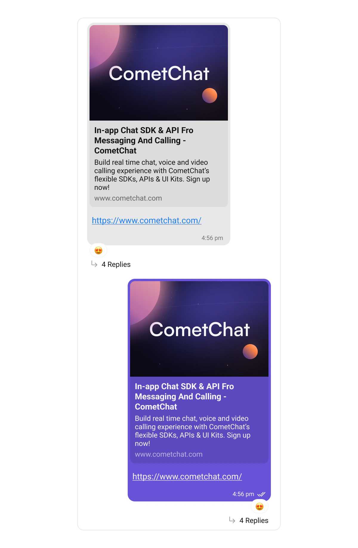 • Link preview bubbles: Style links with previews for shared URLs.
