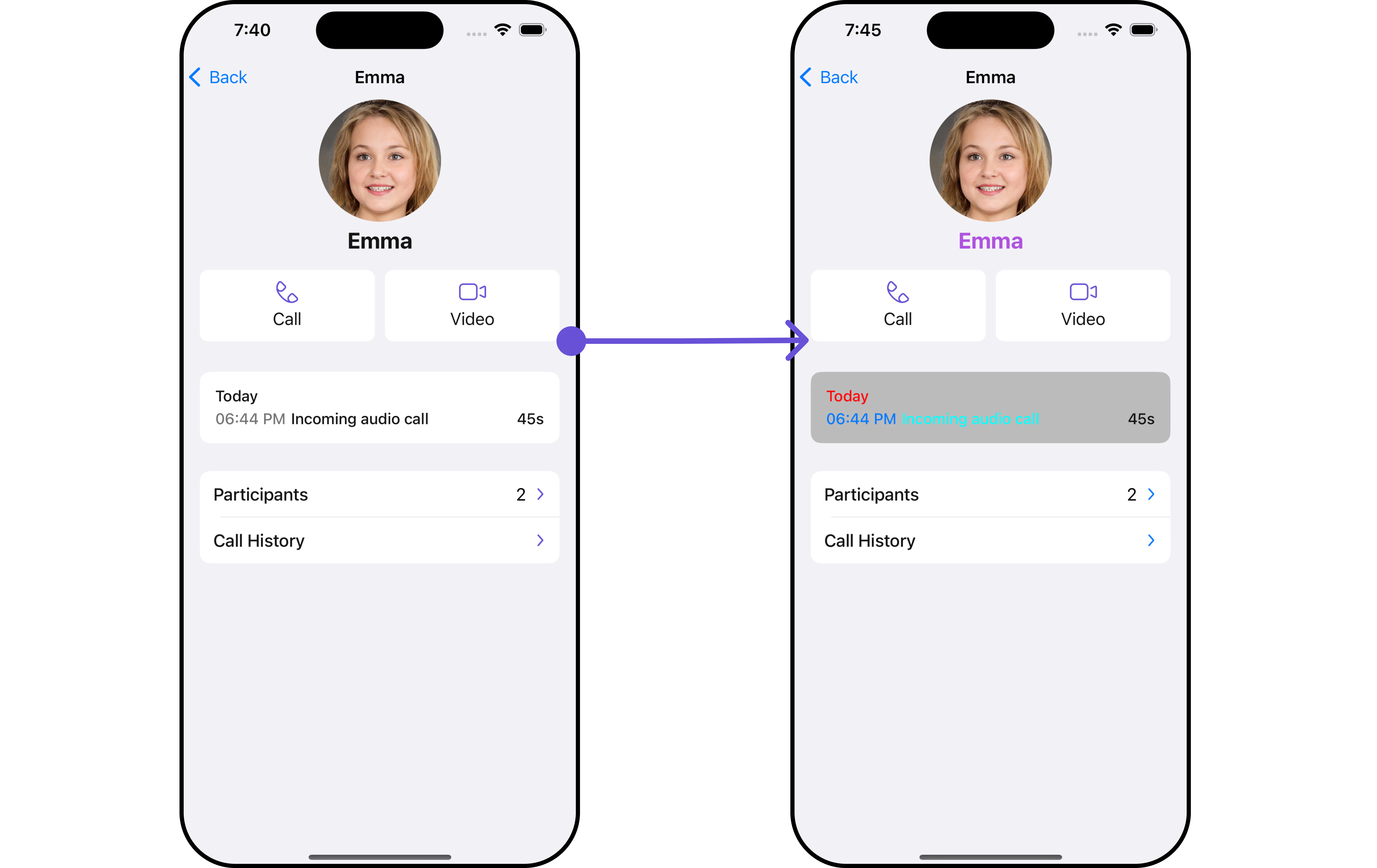 CometChatCallLogDetails is a ViewController, it can be seamlessly presented within your application. To display the details of a CallLog, you simply need to pass the corresponding CallLog object to the CometChatCallLogDetails instance using its setCallLog property. This enables you to efficiently showcase specific call log details within your application’s interface.