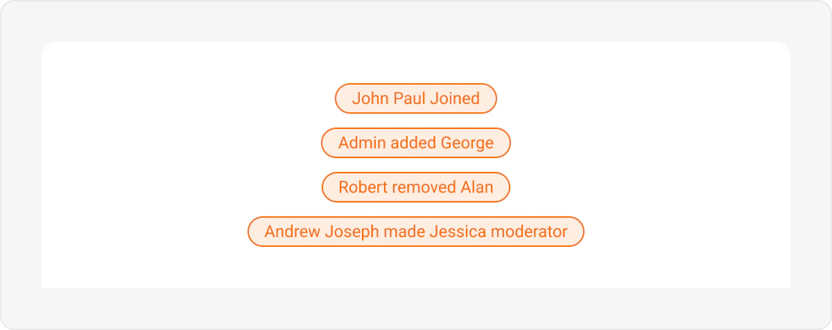 Action bubbles provide a customizable interface for displaying a variety of actions, such as group actions, within a chat. Default