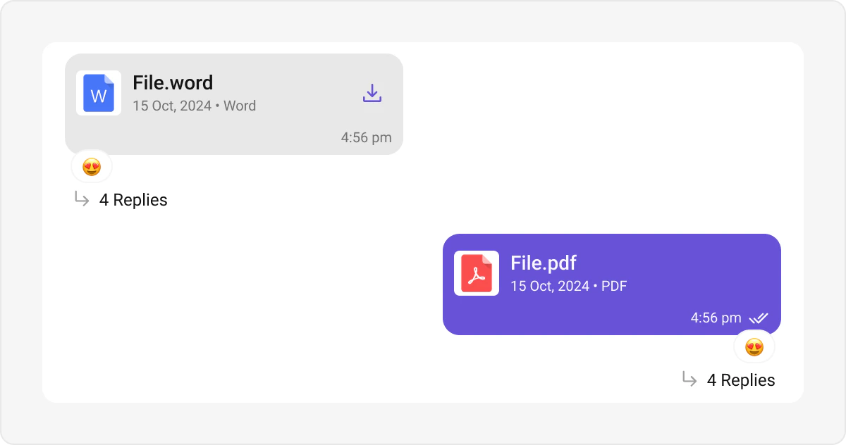File bubbles are used to display shared files, such as documents, PDFs, or spreadsheets. Default