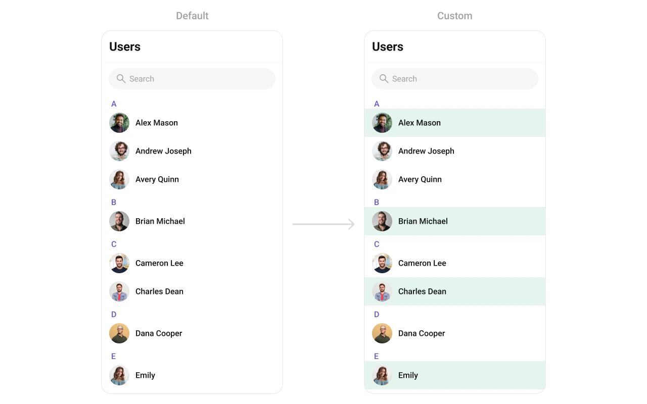 Custom context menu actions for each user item.Common Patterns
