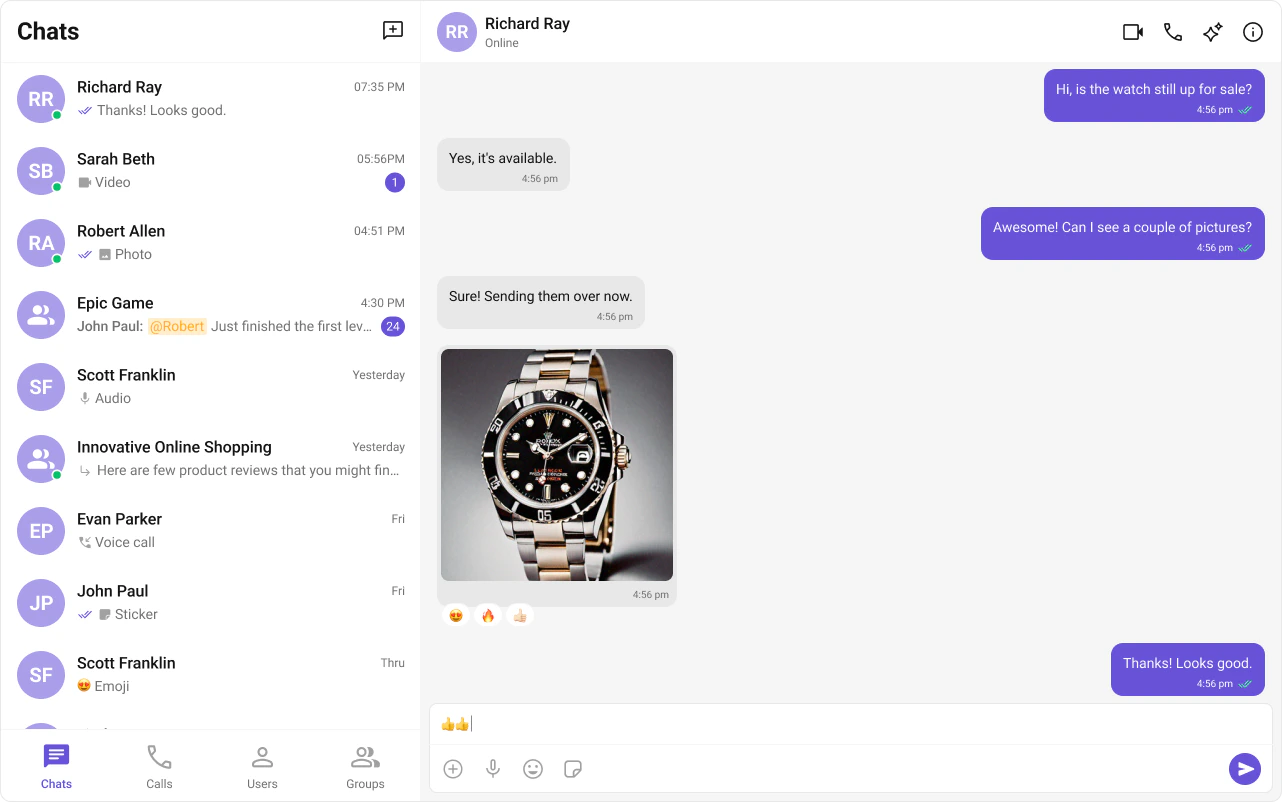 CometChat’s Reactions feature adds a layer of expressiveness to your chat application by allowing users to react to messages. With reactions, users can convey a range of emotions or express their thoughts on a particular message without typing out a full response, enhancing their user experience and fostering greater engagement.