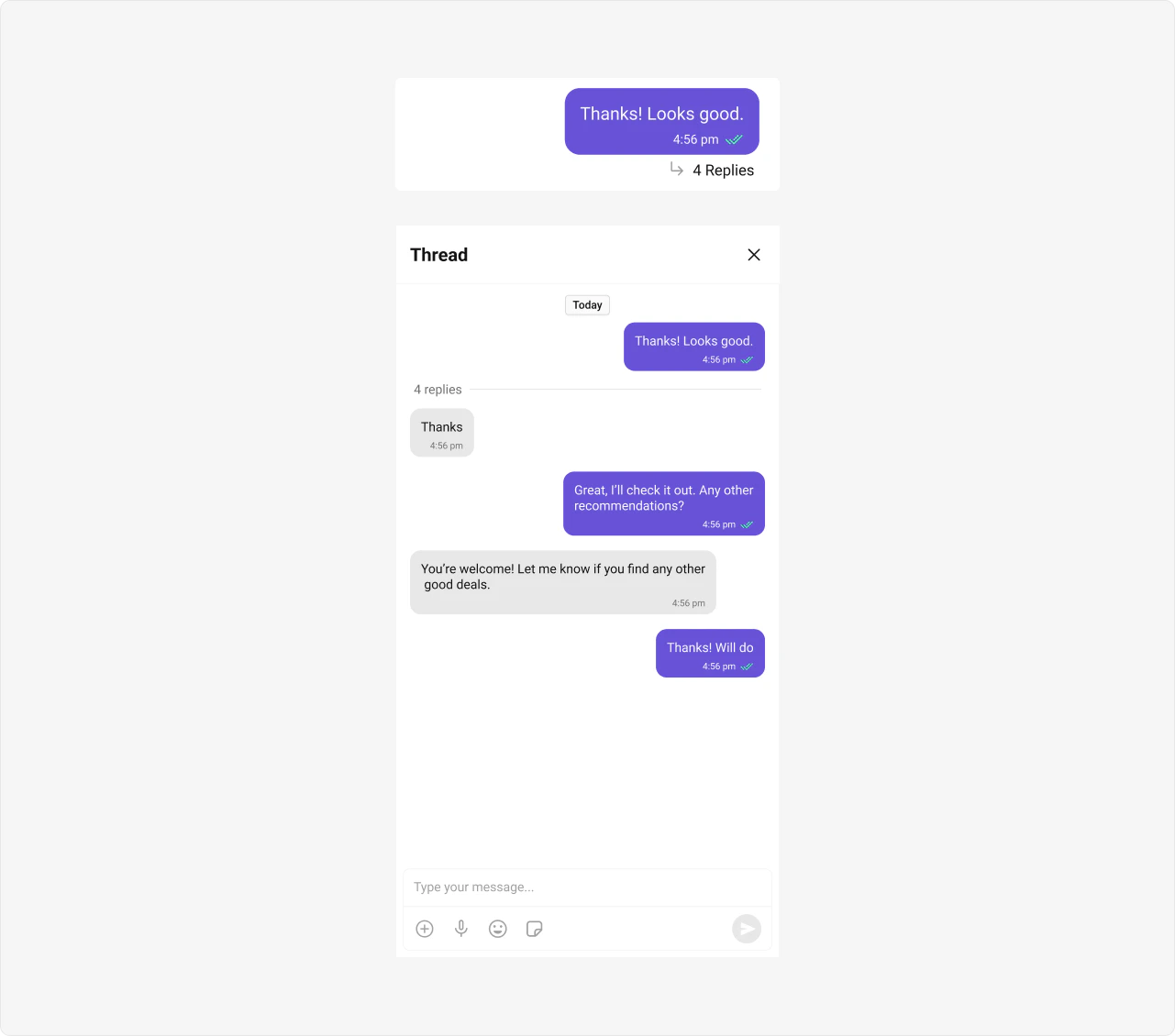 | Threaded Message Preview | Threaded Message Preview component displays the parent message along with the number of replies. |
