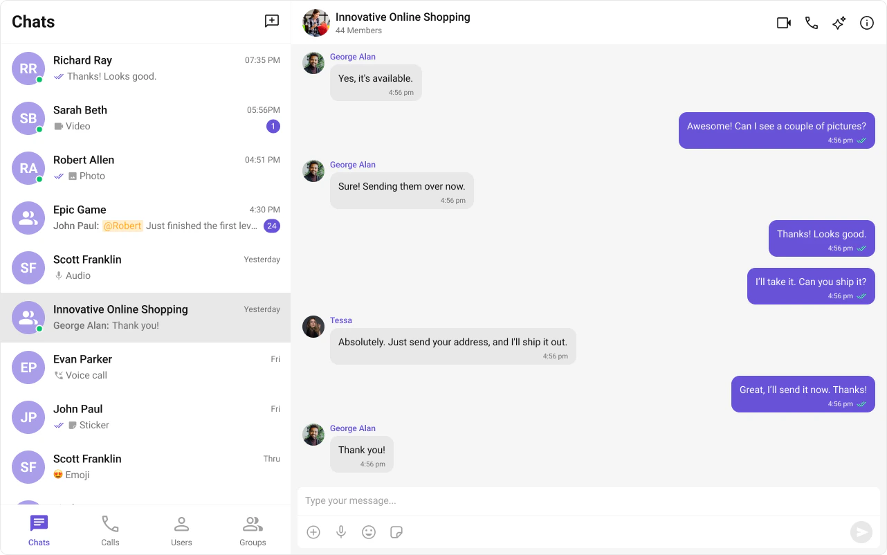 CometChat facilitates Group Chats, allowing users to have conversations with multiple participants simultaneously. This feature is crucial for team collaborations, group discussions, social communities, and more.