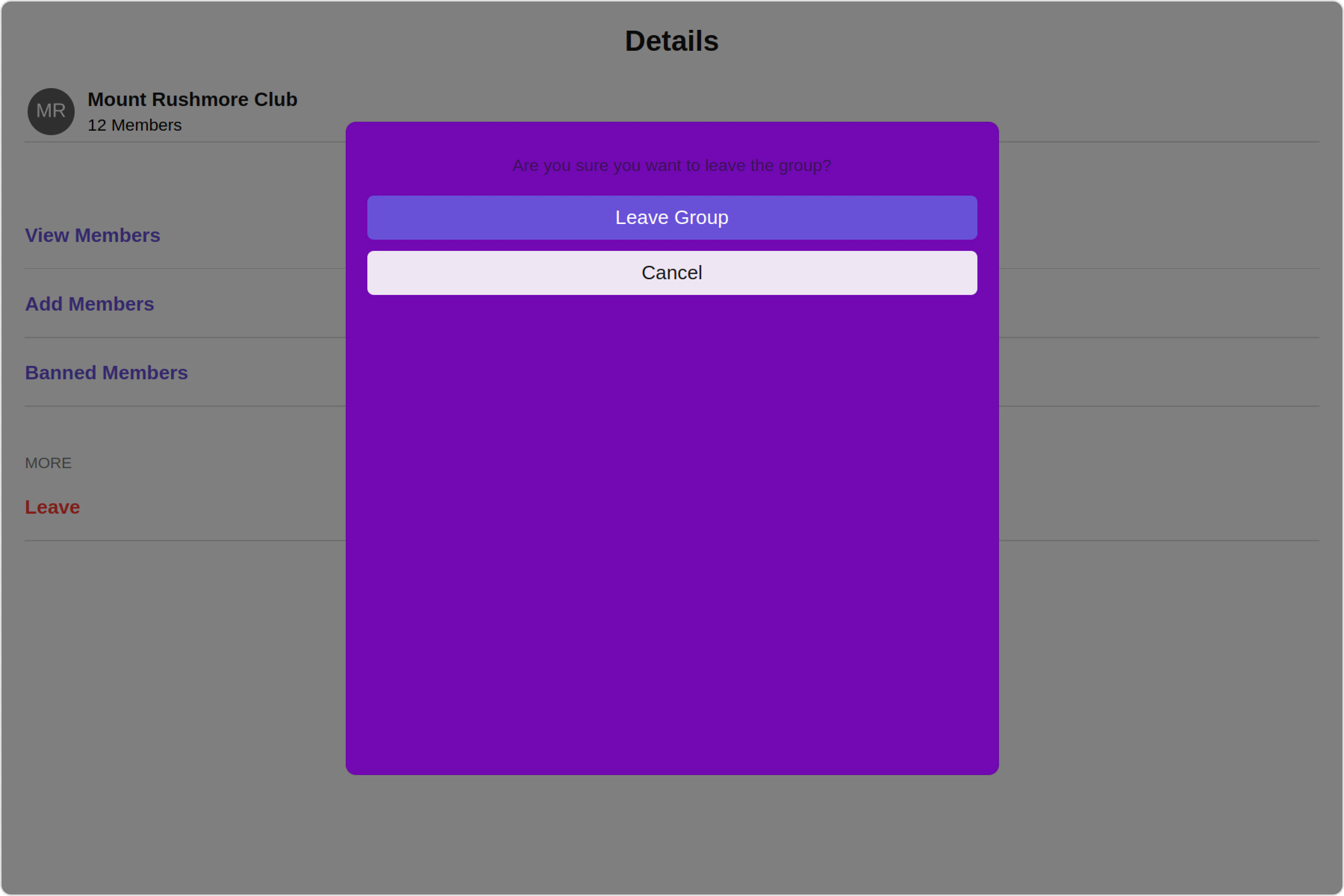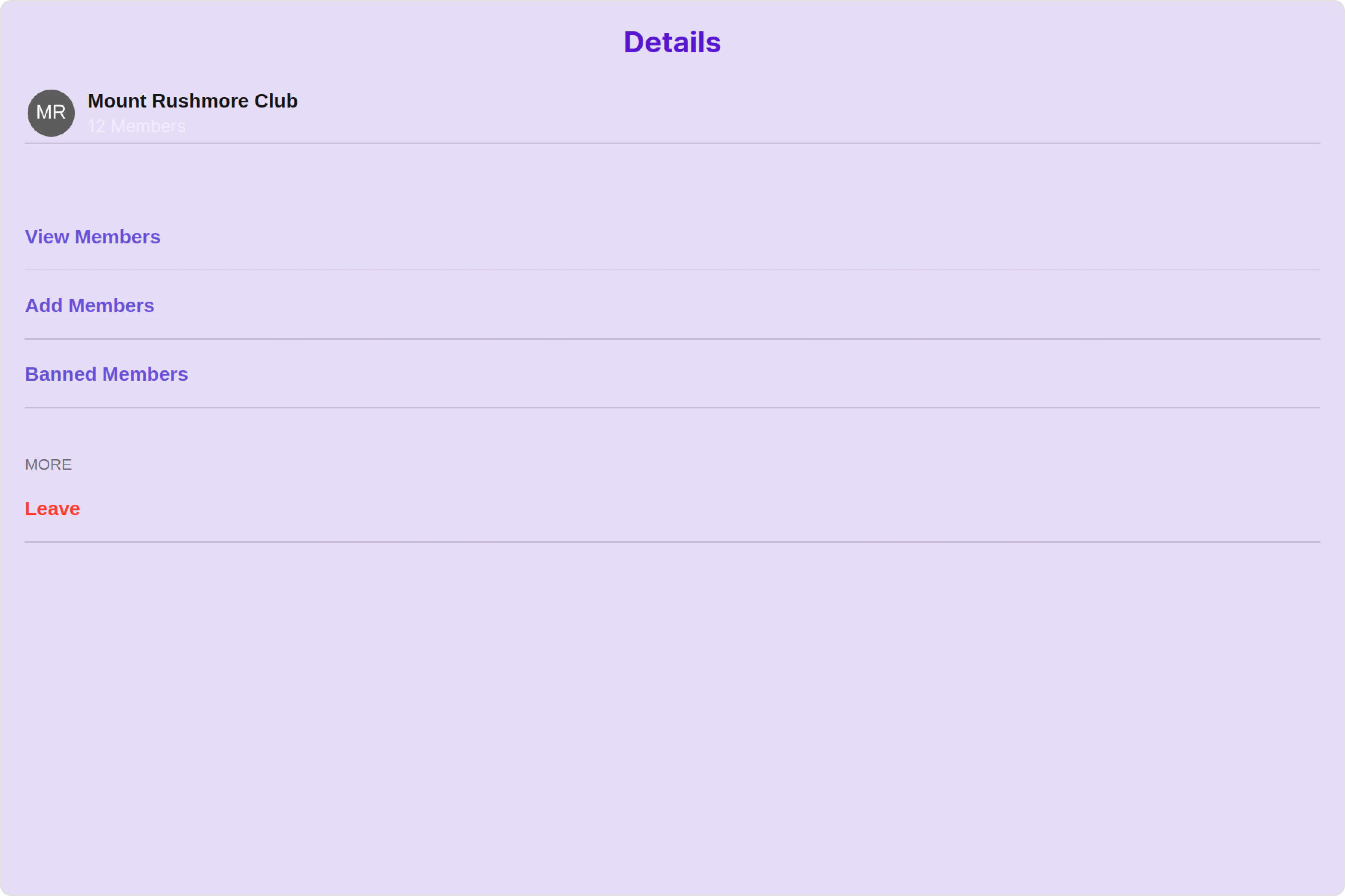 3. Group Actions: This offers actions related to the group, such as leaving the group, or deleting the group.
