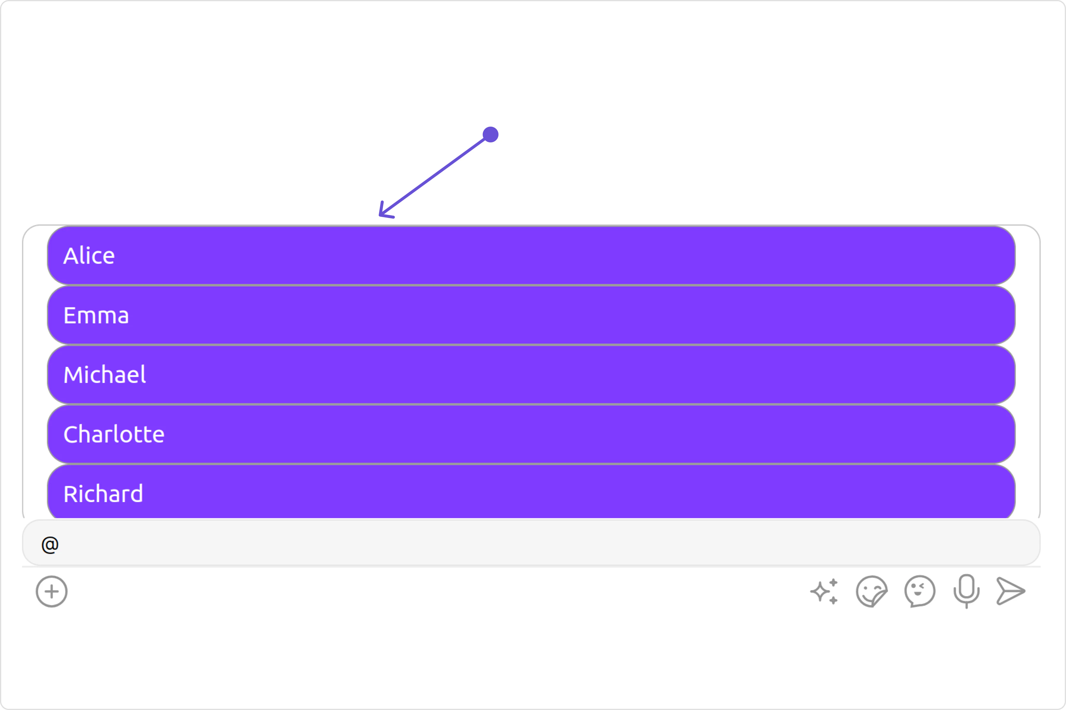 userPresencePlacementdetermines the position where the user presence indicator is displayed relative to the user’s avatar or name, with right or bottom indicating it’s displayed to the right or bottom of the user’s list.userPresencePlacement={UserPresencePlacement.right}