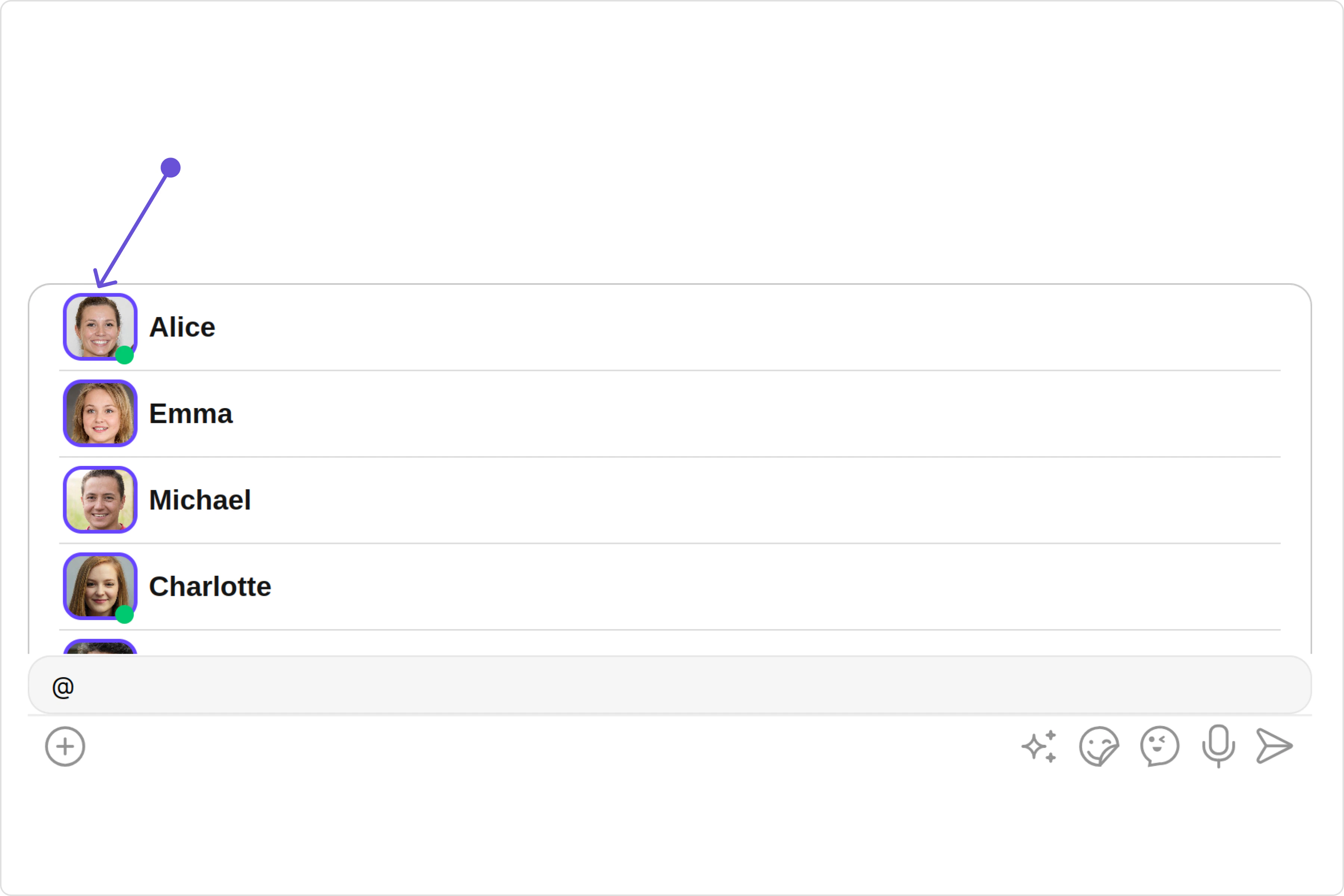 disableUsersPresenceused to control visibility of status indicator shown if user is onlinedisableUsersPresence={true}