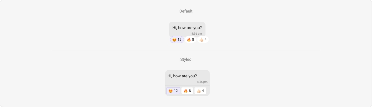- Footer view: This is where the reactions are displayed. It’s located at the bottom of the Message Bubble.