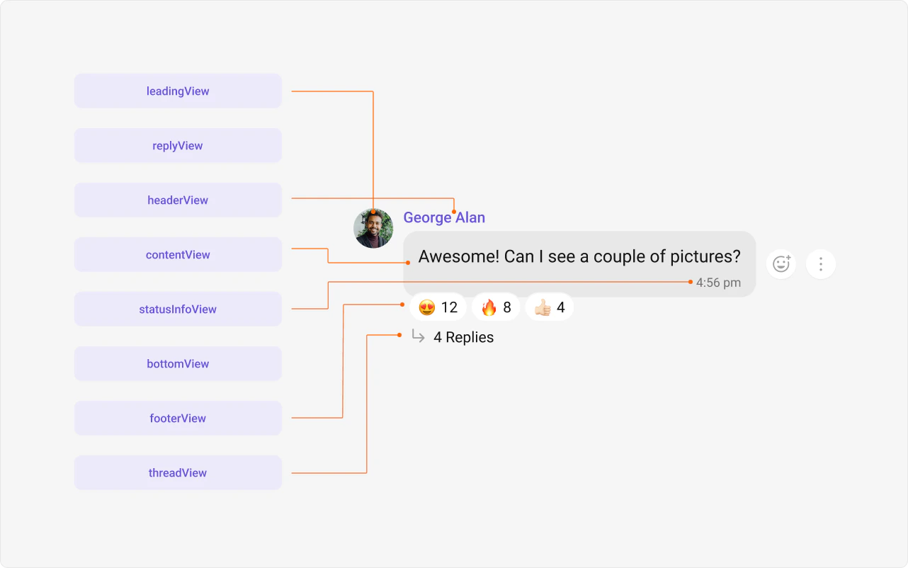- Reply view: This view can be used to extend the Message Bubble with additional elements. It’s typically placed above the Content view.